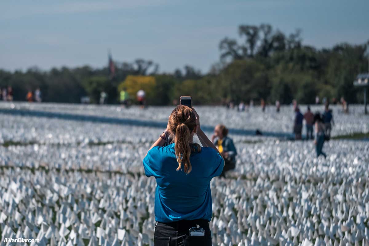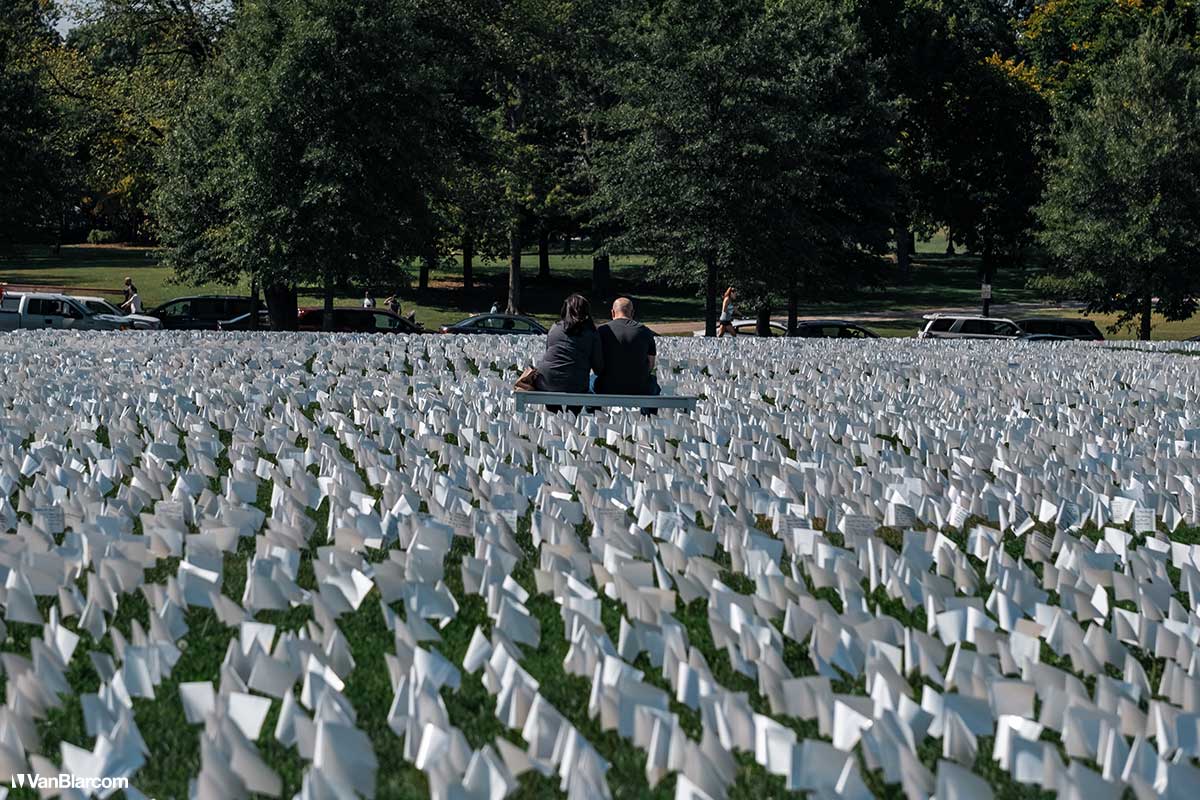 October 2021 - I took a ride to DC this weekend specifically to see Suzanne Firstenberg’s ‘In America’ installation. I originally intended to simply view and photograph the project, not expecting to connect much to the deeper meaning behind it. As I watched my mother fill out a memorial flag for her friend (image 3) with her hand shaking and eyes welling with tears, I found that deeper connection. I was no longer looking simply at white flags planted on this site, I was seeing people - each with a story, a life, a legacy. It is a truly beautiful and powerful memorial.
